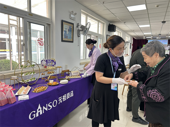 将“精致”理念从产品端延伸至公益实践,元祖食品细节之处体现周全。活动前期,工作人员除了布置“顺时食”精致茶歇区,还向院内护理人员详细说明了甜度、软硬度等信息,便于老年人按需选择、安心享用,为重阳送爱心活动保驾护航。